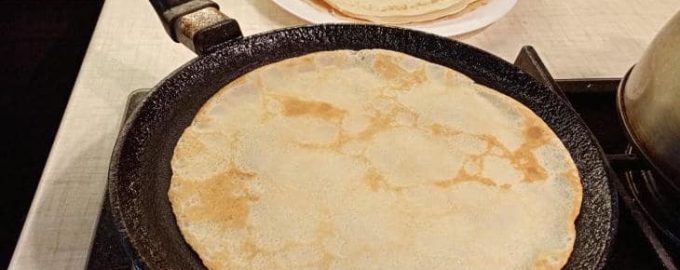Deixe-a aquecer enquanto assobia uma melodia. Depois, é só ver a sua frigideira dar à luz, uma a uma, panquecas macias e rendadas. É uma pequena recompensa pela sua paciência, e come-se num instante.
